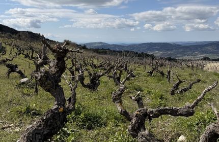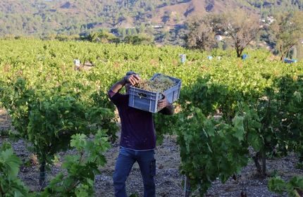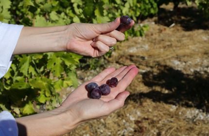 sparingly. Young vineyards may receive limited irrigation through targeted drip systems during their first years of growth, while our older, established vineyards are completely dry-farmed.